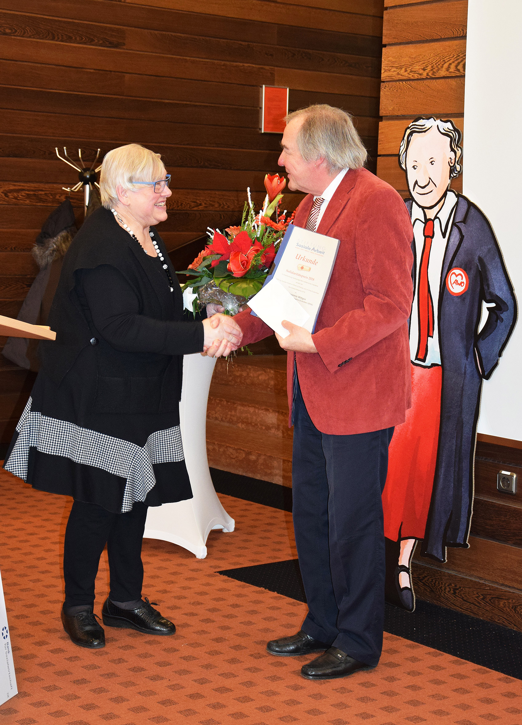 Der Solidaritätspreis 2018 wurde von der Stiftung Soziale Arbeit in Euskirchen vergeben. Preisträgerin war Annemie Wittgen, die Vorsitzende der Bundesinitiative Großeltern.
